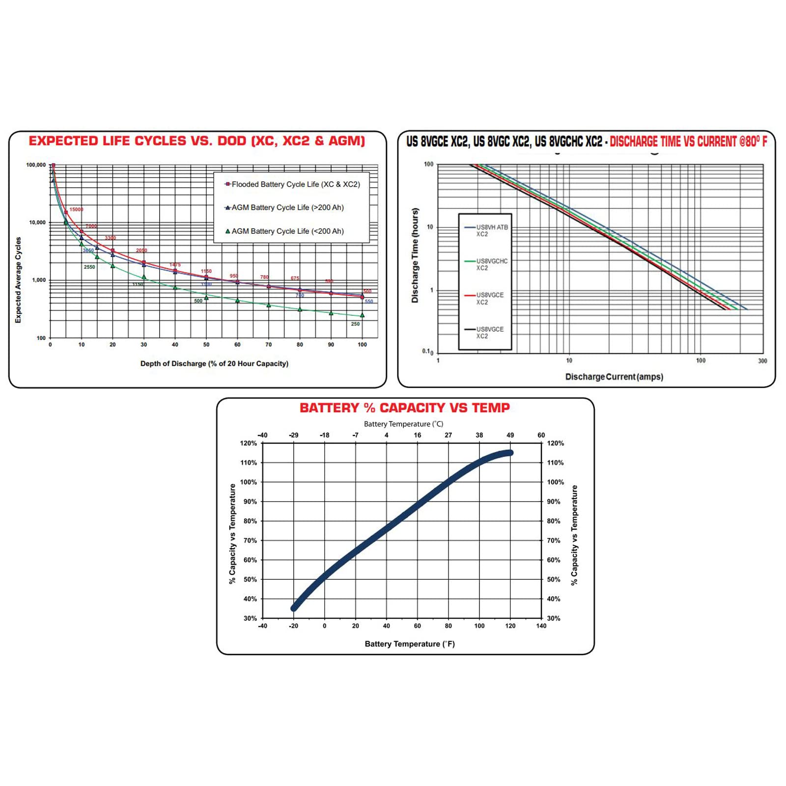 2x US8VGC-XC2 8V 170Ah Group Size GC8 Flooded Deep Cycle Batteries For RVs, Boats