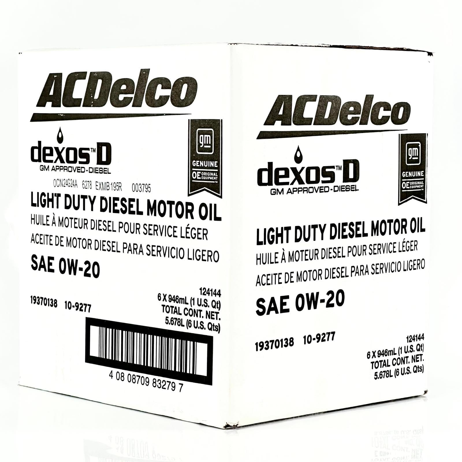 ACDelco GM Original Equipment 10-9277 (19370138) dexosD™ 0W-20 Diesel Motor Oil - 1 qt (Pack of 6)