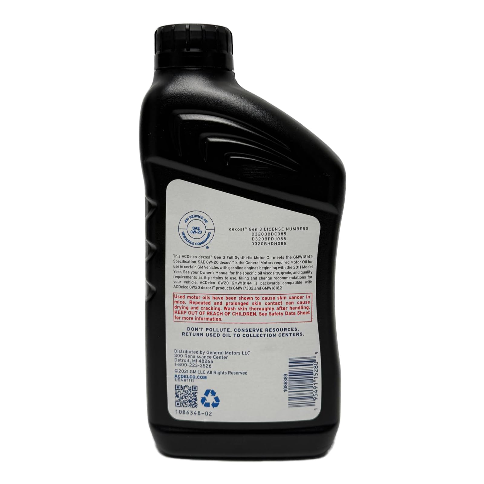 ACDelco GM Original Equipment 10-9326 (19432319) dexos™1 GEN 3 Full Synthetic 0W-20 Motor Oil - 1 qt (Case of 12)