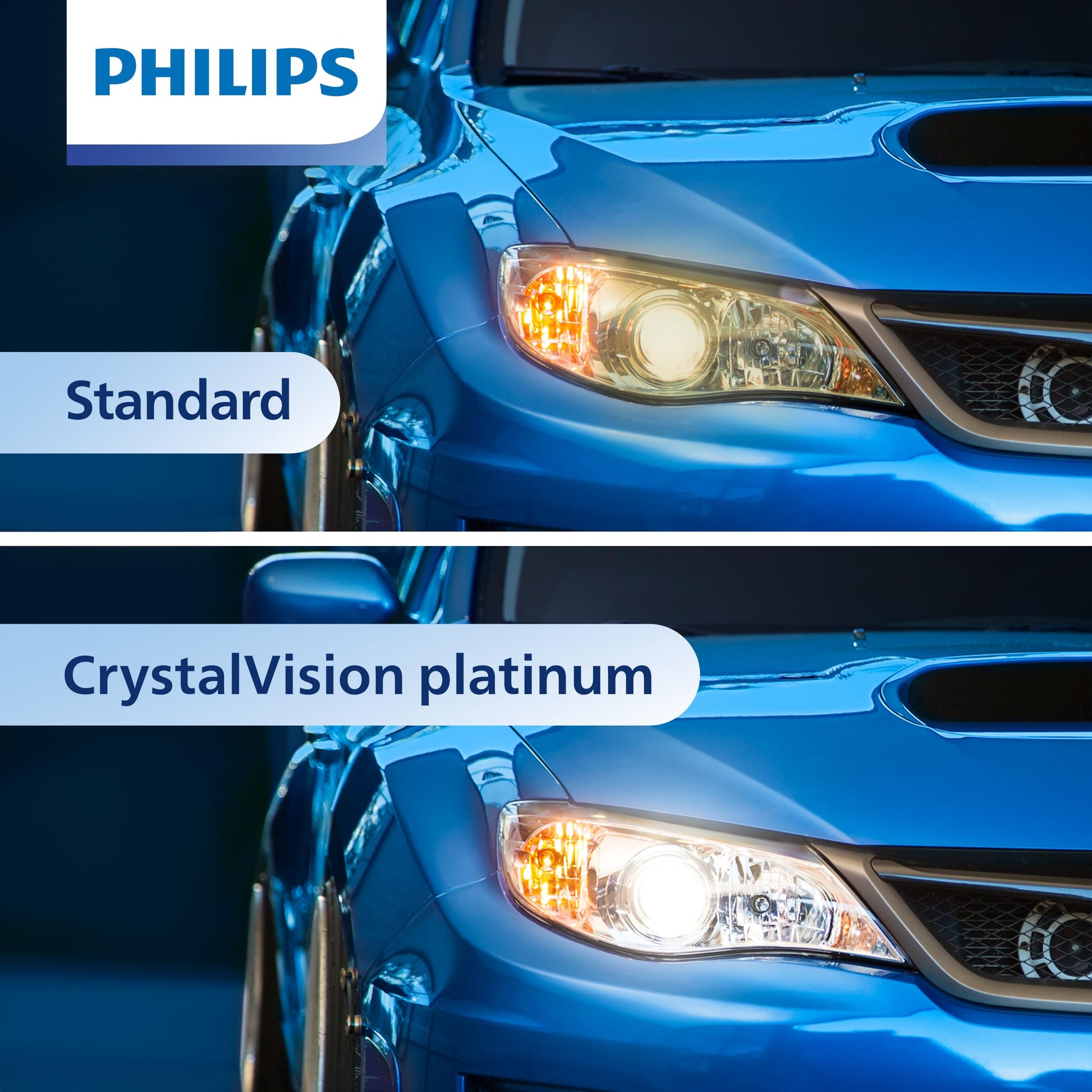 - BRIGHT AND STYLISH: Philips CrystalVision platinum premium upgrade headlight bulbs deliver a sharp, irresistible look. A new patented, ultra-white gradient coating creates up to 4000 K white light.