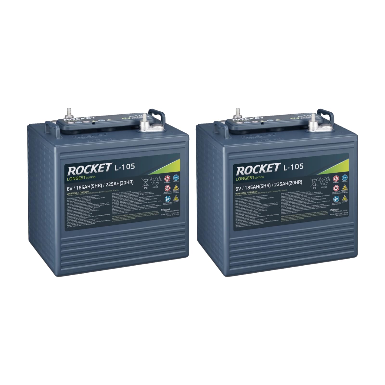 Rocket L-105 225Ah 6V Golf Cart Battery - Replaces Trojan T-105 (Set of 2)
