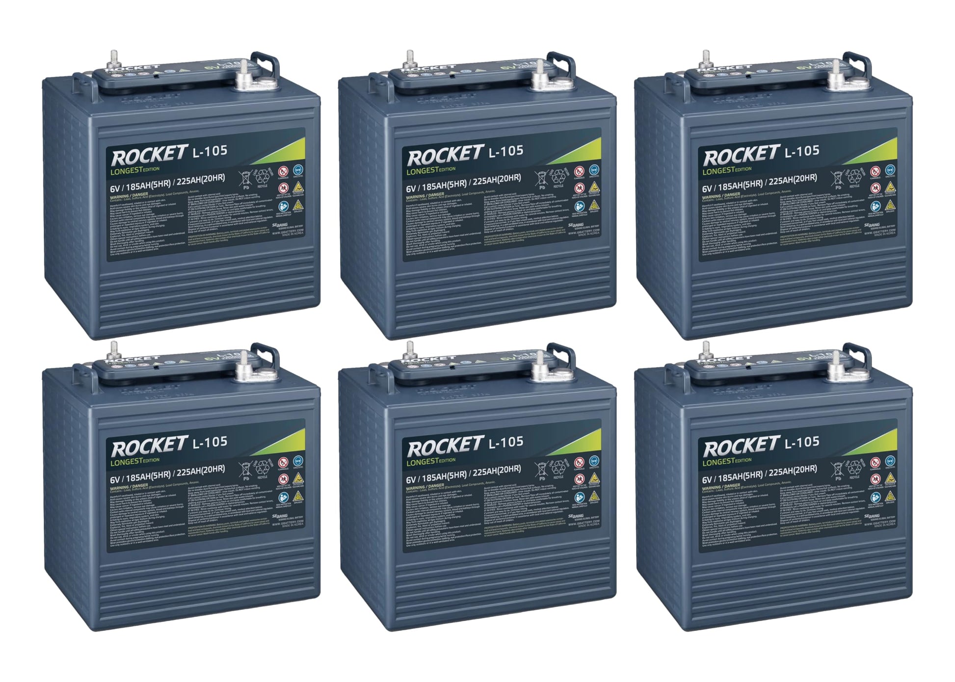 Rocket L-105 225Ah 6V Golf Cart Battery - Replaces Trojan T-105 (Set of 6)