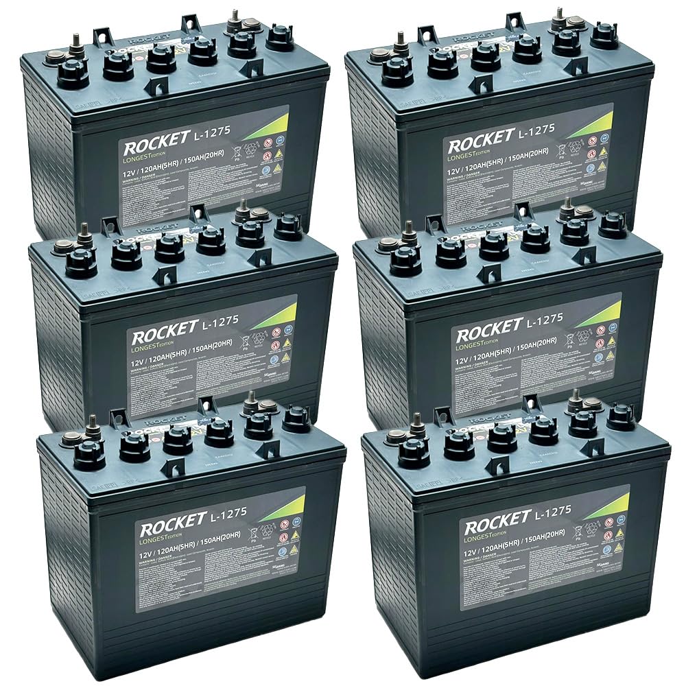 Rocket L-1275 150Ah 12V GC Battery - Replaces Trojan T-1275 Plus (Set of 6)