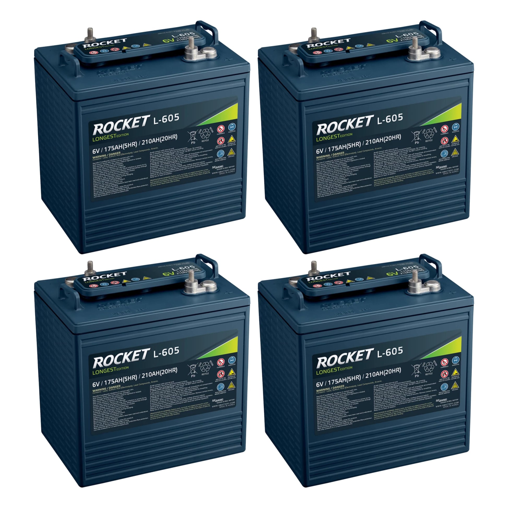 ROCKET L-605 210Ah 6V Golf Cart Battery - Compatible with Trojan T-105 T-605 (Set of 4)