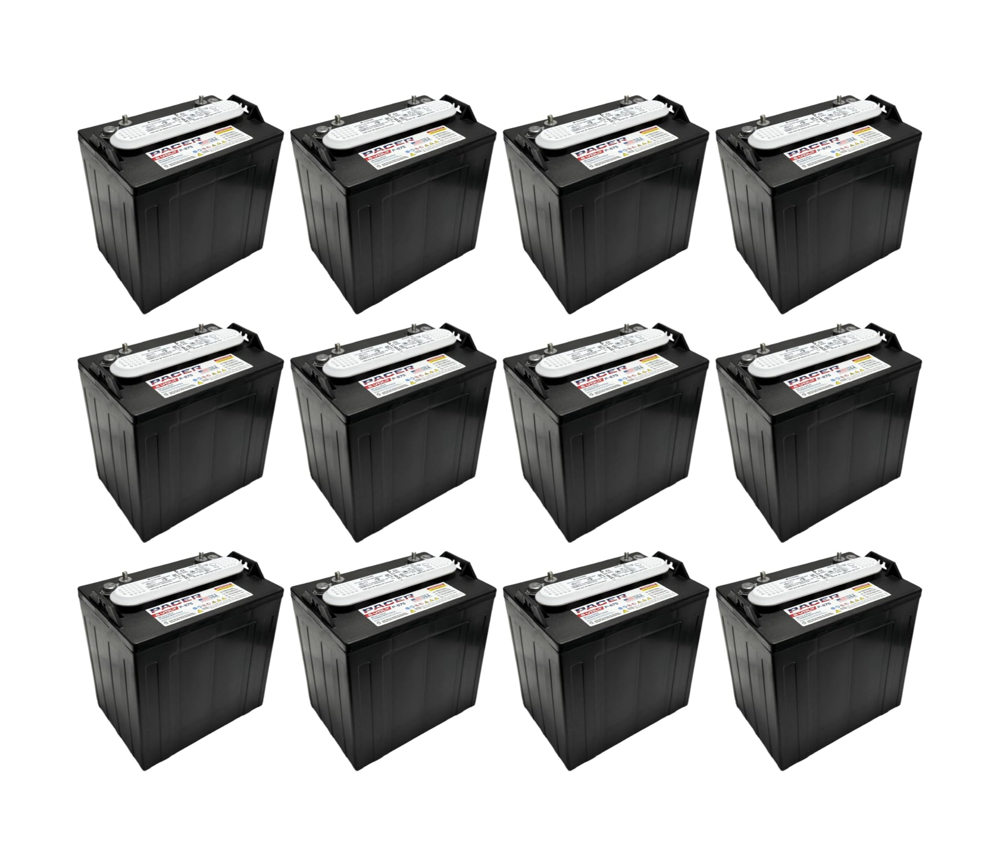 (Set of 12) Pacer P-875 8 Volt 165Ah Golf Cart, Solar, Marine, RV, and Industrial Use Deep Cycle Battery - Compatible With T-875 | T875