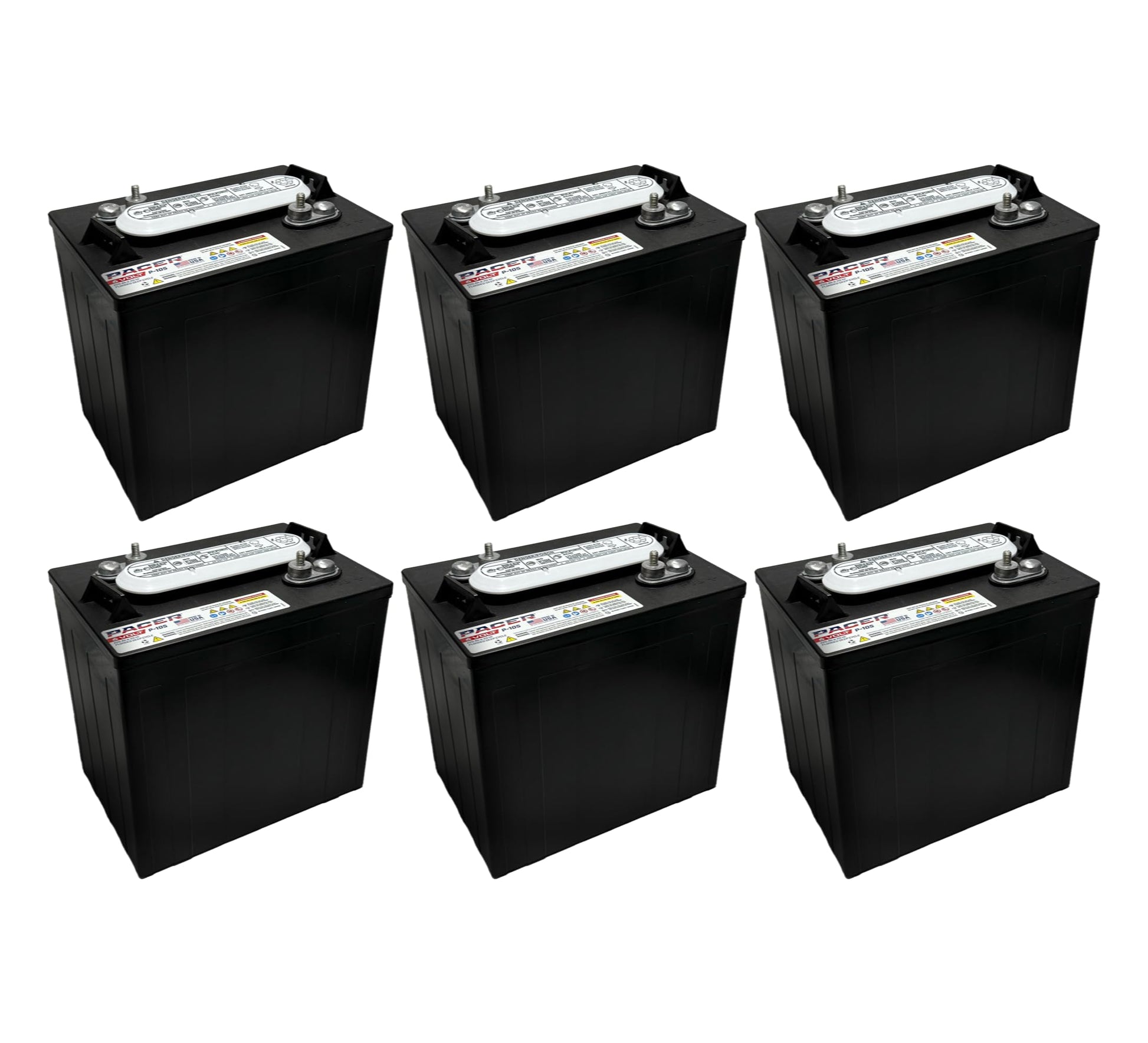 (Set of 6) Pacer P-105 6 Volt 220Ah Deep Cycle Golf Cart, Solar, Marine, RV & Industrial Use Battery | BCI Group GC2 ~ Compatible with T-105 | T-605