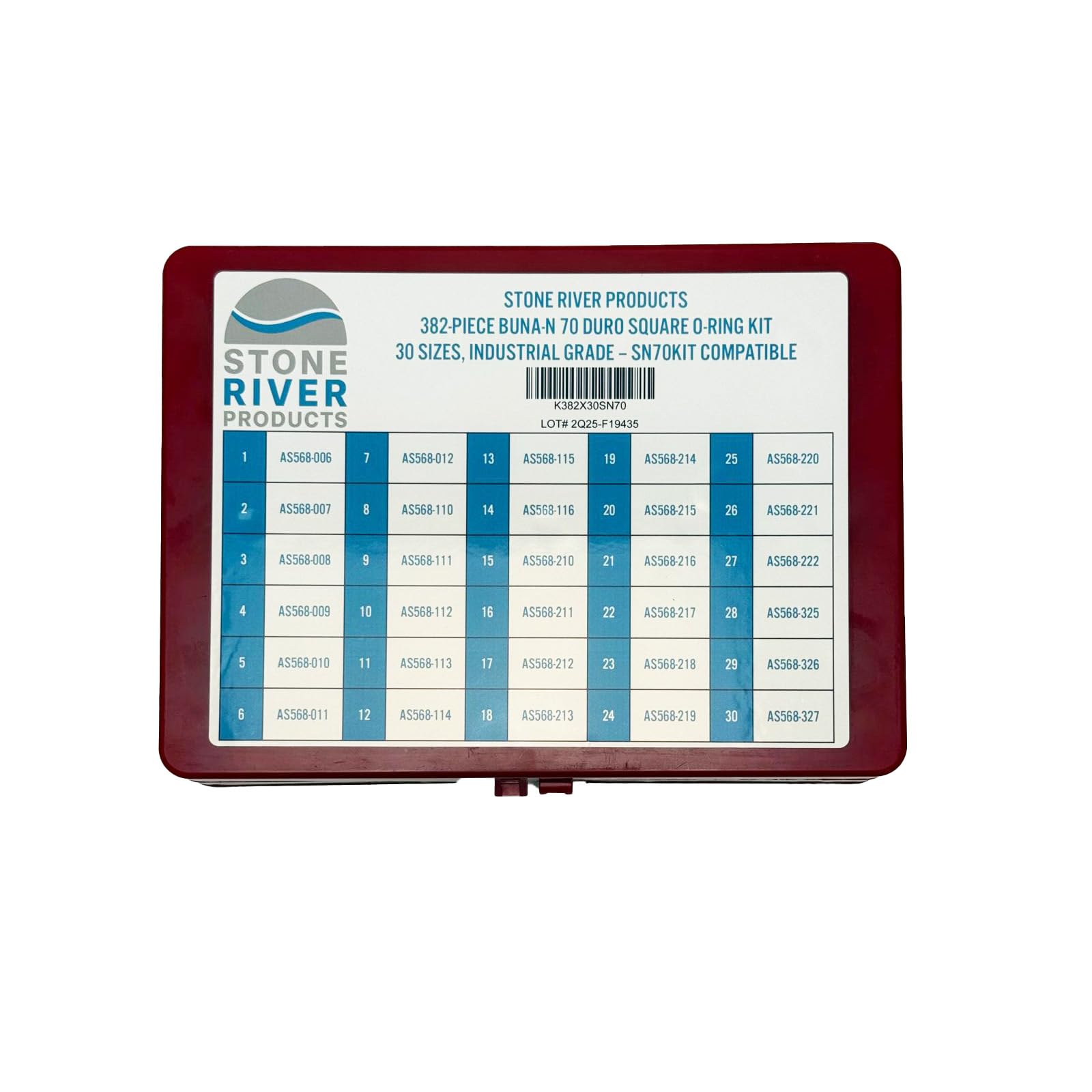 Stone River Products Standard Buna-N 70 Square Ring Kit - 382 Pieces | 30 Sizes