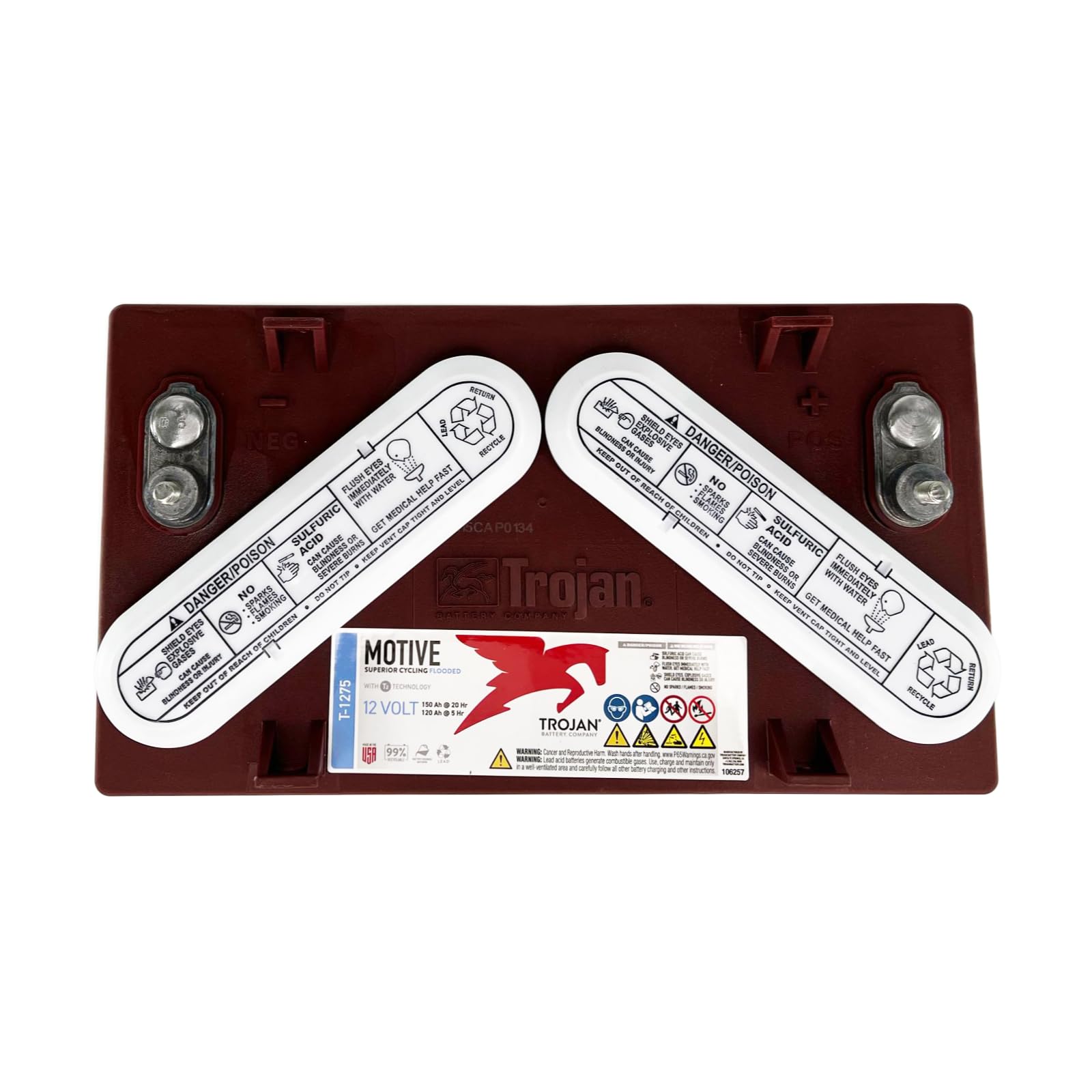 Trojan T-1275 12V Flooded Lead Acid Battery, 150Ah 20-Hr Rate - Set of 4